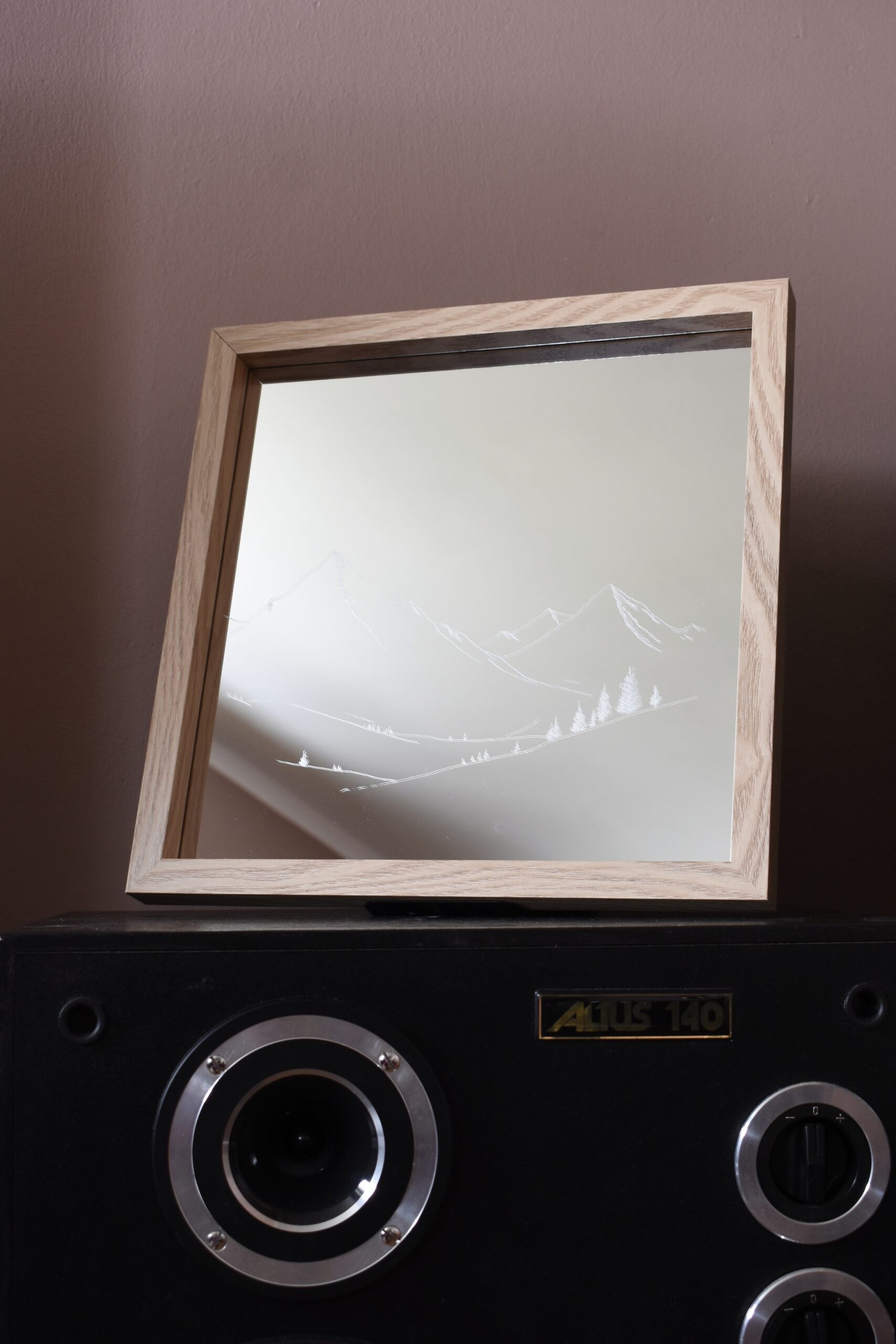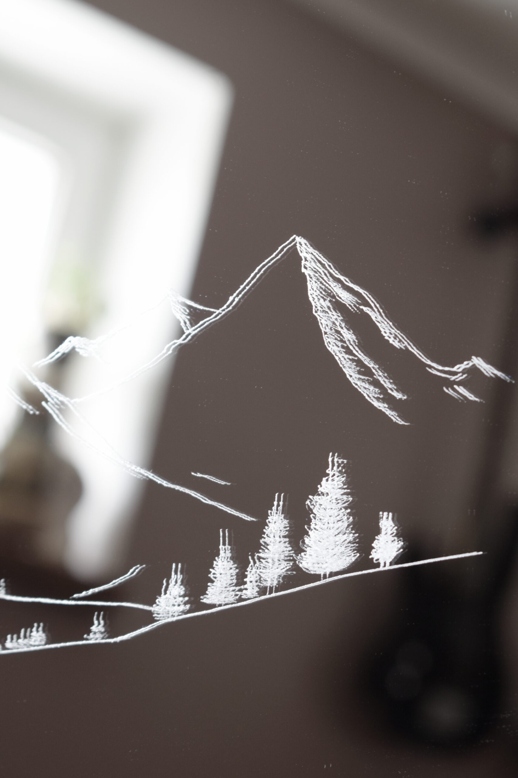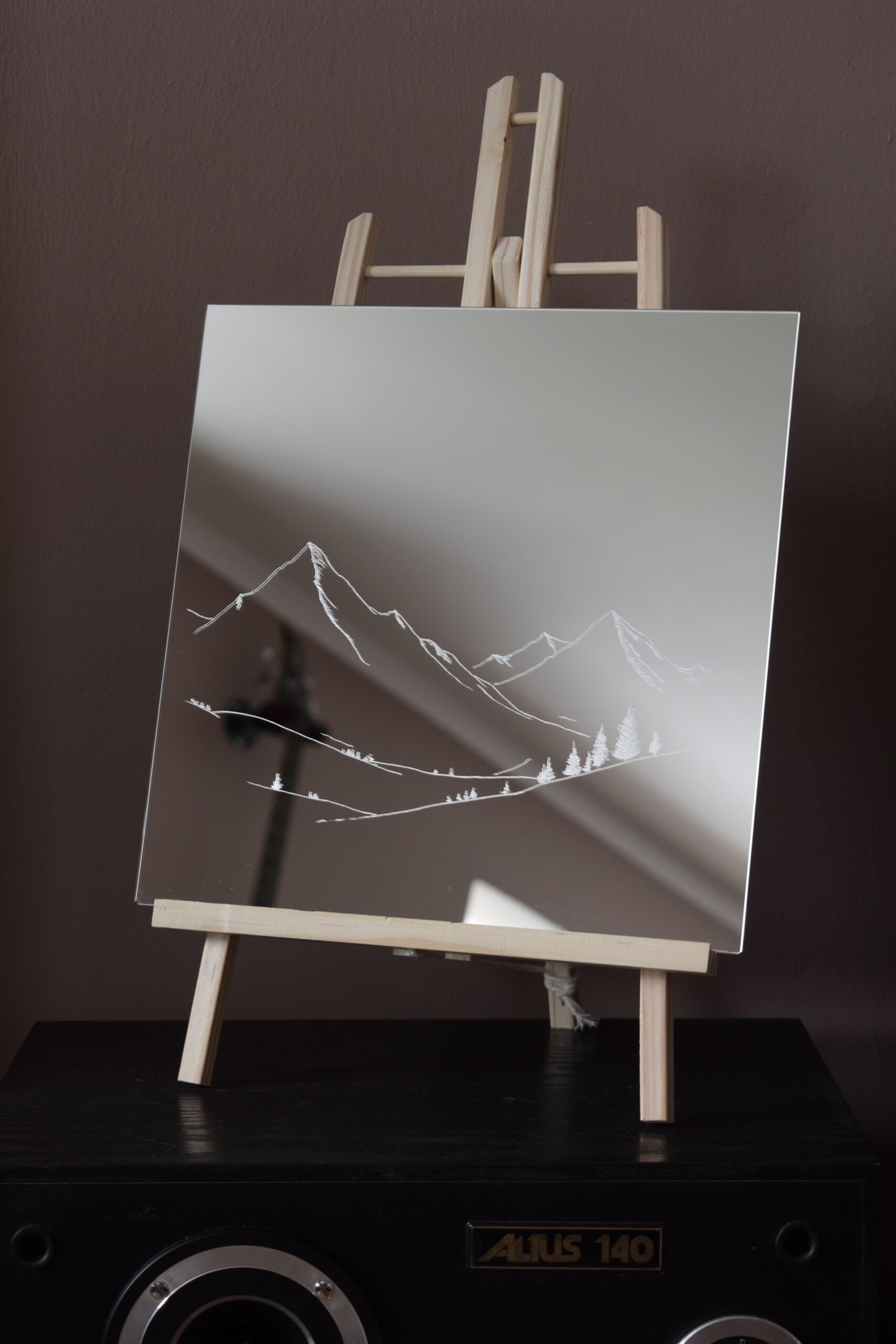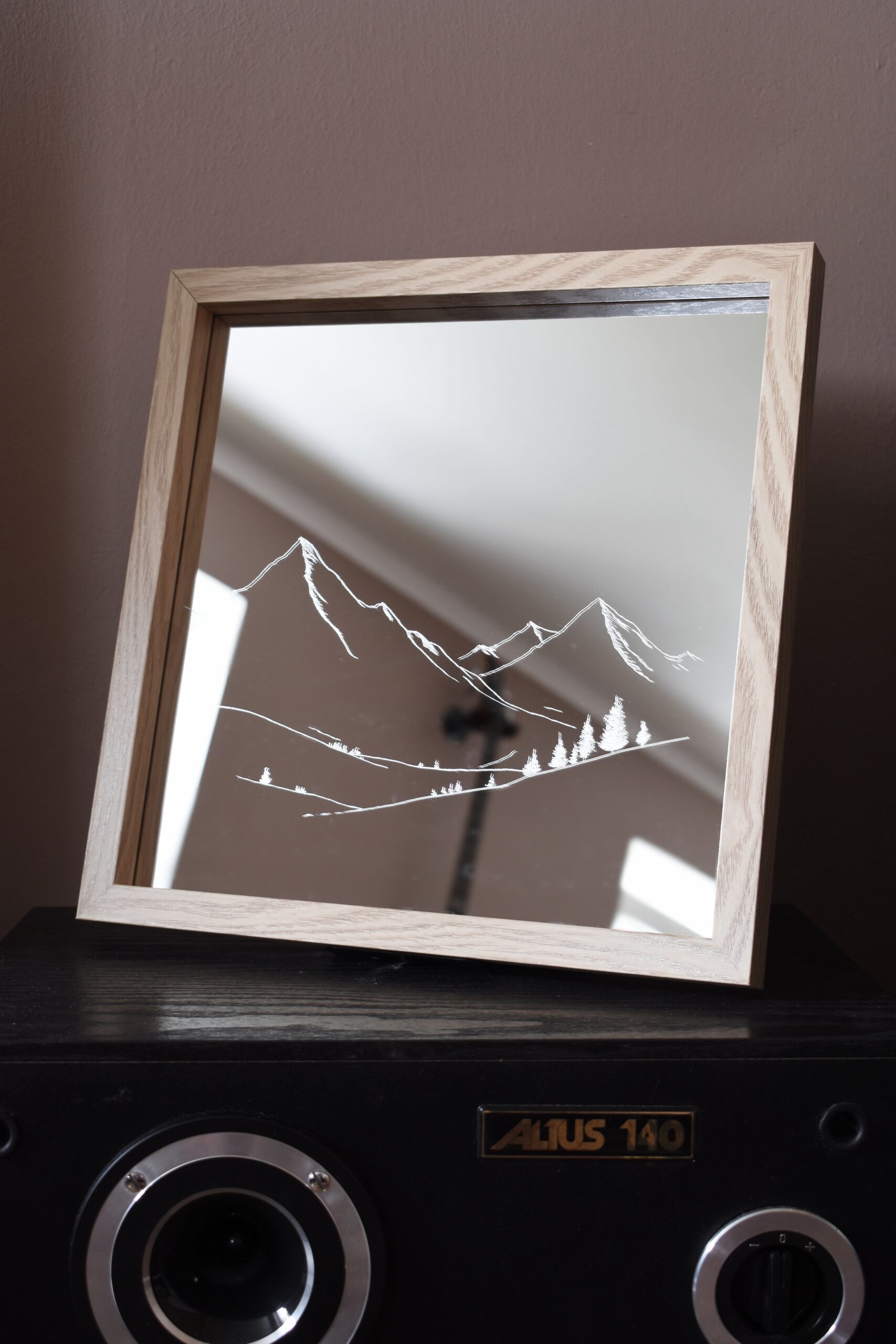 Lustro z Grawerem Gór – Minimalistyczny Krajobraz na Powierzchni